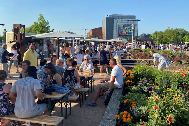 Der beliebte Abendmarkt "LAGAkoller" in Gronau (Westf.) geht in die nächste Runde und verspricht auch in diesem Jahr wieder kulinarische Genüsse und ein stimmungsvolles Ambiente. In Zusammenarbeit mit Duesmann organisiert das Stadtmarketing Gronau den Abendmarkt auf dem Inselparkgelände an drei Terminen im Sommer. Hier können Besucherinnen und Besucher nach Herzenslust schlemmen, bummeln und genießen. Verschiedene Stände laden mit leckerem Essen und erfrischenden Getränken zum Verweilen ein. Ein besonderes Highlight beim Juli-Abendmarkt ist das Wasser-Orchester, das als Gast beim LAGAkoller dabei ist. Das Wasser-Orchester besteht aus über 50 Instrumenten und mechanischen Apparaten, die faszinierende Klänge des Wassers erzeugen oder Wasser zur Tonerzeugung nutzen. Dieses Erlebnis ist nicht nur für Kinder, sondern auch für Erwachsene ein großartiges musikalisches Highlight. (© FuM)