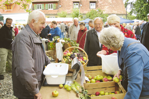Auch in diesem Jahr erwartet der Apfel- und Kartoffelmarkt in Bächingen an der Brenz wieder viele Besucher. Bei diesem bunten Markt gibt allerlei Nützliches und einige Leckereien aus der Region. Zahlreiche Marktstände präsentieren den Besuchern ihre selbst gebrannten Liköre, Säfte und Schnäpse. Beratung, Kinder-Basteln, Staudentauschbörse und viele weitere Aktionen wird es geben. Dies ist ein Ereignis für die ganze Familie. Der Apfel- und Kartoffelmarkt in Bächingen findet immer am vierten Sonntag im September statt, 2025 bereits zwei Wochen früher. (© FuM)