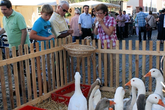 Eine Woche vor dem Umstädter Winzerfest findet jedes Jahr ein Bauernmarkt in Groß-Umstadt statt. An diesem Wochenende bieten Landwirte, Winzer und Direktvermarkter aus dem vorderen Odenwald ihre Produkte an und geben zugleich Einblicke in die Arbeit moderner Land- und Energiewirtschaft. Musik und Unterhaltung machen diesen Bauernmarkt zu einem großen Familienfest. Wie es sich für einen richtigen Bauernmarkt gehört, stehen bei der gastronomischen Versorgung der Marktbesucher ebenfalls regionale Produkte auf der Speisekarte. Der Flohmarkt am Samstag und ein verkaufsoffener Sonntag runden den Bauernmarkt in Groß-Umstadt ab. (© FuM)