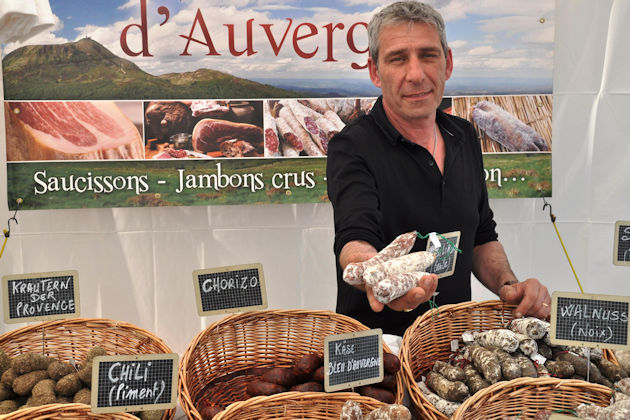 An diesen Tagen verwandelt sich der Kiliansplatz in Heilbronn in einen französischen Gourmetmarkt. Alle Besucher sind herzlich eingeladen ein wenig das Ambiente Frankreichs zu genießen. Es werden vielerlei frische Produkte aus der Provence, der Bretagne oder den Pyrenäen angeboten. Ofenfrische, duftende Flammkuchen und eine Vielfalt an prämierten Käse-, Wurst-, und Schinkenspezialitäten, Wein, Champagner, Crepes und Galettes, frische Croissants, Pasteten und Terrinen lassen den Einkauf zu einem Erlebnis werden. Bei diesem Markt wird es alles geben, was Feinschmecker und Liebhaber der französischen Küche suchen. Abgerundet wird der Markt am Donnerstag und Freitag durch den Akkordeonist und am Samstag und Sonntag zelebriert das Quartett "Garcons Trottoirs". Die örtlichen Einzelhändler beteiligen sich mit einem verkaufsoffenen Sonntag am französischen Gourmetmarkt in Heilbronn. (© FuM)