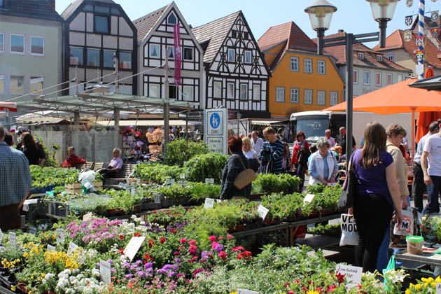 Im Jahr 2017 findet der Frühlingsmarkt in Bad Neustadt schon im März statt. Die Markthändler erwarten ab 10 Uhr die Kundschaft an ihren Ständen auf dem Marktplatz. Ab 12.30 Uhr öffnen dann auch die Geschäfte der Innenstadt zum verkaufsoffenen Sonntag. Damit der Shoppingsonntag für die Besucher zum Erlebnis wird, haben sich die Organisatoren und Einzelhändler wieder tolle Aktionen einfallen lassen. (© FuM)