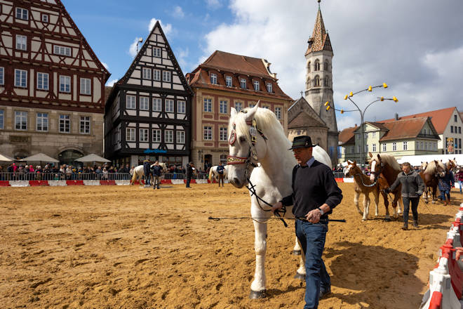 Zum Gmünder Pferdetag in Schwäbisch Gmünd, der größten Stadt im Remstal, dreht sich alles rund um das Thema Pferde. Unter anderem finden hier die traditionsreiche Pferdeprämierung sowie zahlreiche Reit- und Dressurvorführungen statt. Vorführungen traditioneller Handwerkskünste und Rundfahrten mit der Pferdekutsche runden das Angebot dieses Jahrmarktes ab. Die Kinder dürfen sich auf Ponyreiten freuen. In der Regel beteiligen sich die Einzelhändler am Gmünder Pferdetag mit einem verkaufsoffenen Sonntag in Schwäbisch Gmünd. (© FuM)
