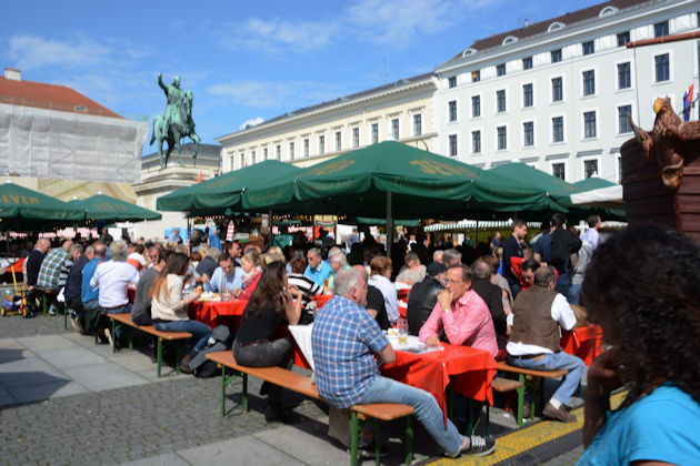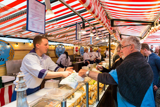 Original Hamburger Fischmarkt meets Bayern! Richtig gelesen, der Hamburger Fischmarkt kommt nach München. In der bayerischen Landeshauptstadt regiert für 12 Tage der Fisch. Auf dem Wittelsbacher Platz werden geräucherter Aal, Fischbrötchen in allen Variationen sowie Labskaus angeboten. Dazu reisen extra die Gastronomen des Original Hamburger Fischmarkts an. (© FuM)