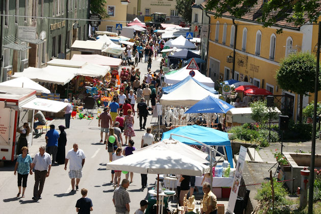 Exaudimarkt in Falkenstein (Oberpfalz) war gestern, jetzt gibt es den Falkensteiner Herbstmarkt. Kunterbunt wie der Herbst präsentiert sich dieser Markt. Fieranten und Kunsthandwerker bieten ihre Waren an. Dazu sorgen Gastronomiestände sowie die umliegenden Gastronomiebetriebe für das kulinarische Wohl der Besucher. Ein verkaufsoffener Sonntag der örtlichen Einzelhändler sowie das abwechslungsreiche Rahmenprogramm für Groß und Klein runden den Herbstmarkt in Falkenstein (Oberpfalz) ab. Der Falkensteiner Herbstmarkt findet in der Regel am dritten Sonntag im September statt. (© FuM)