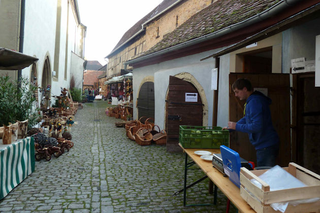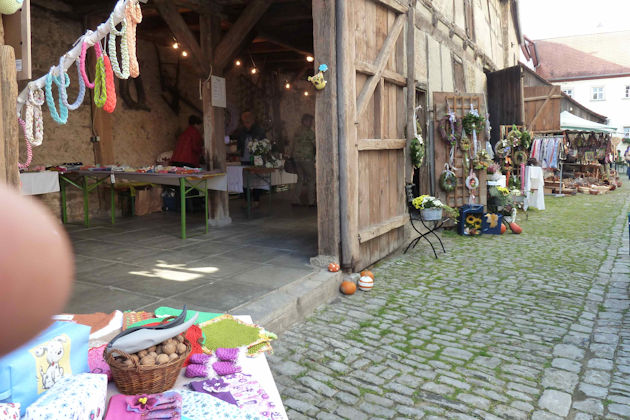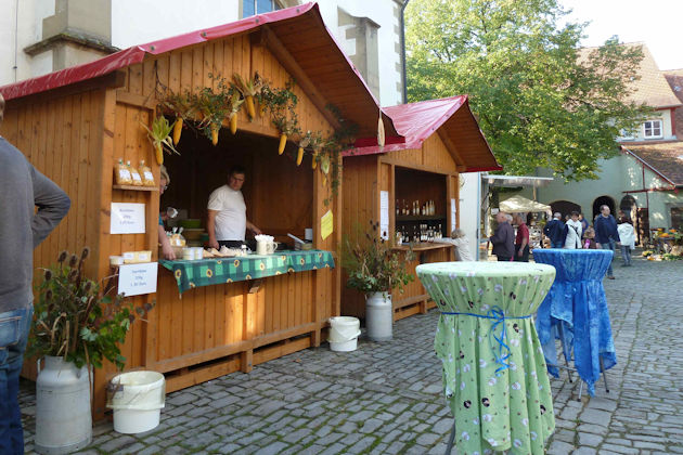 Jedes Jahr am Tag der Deutschen Einheit wird in der Kirchenburg Kleinlangheim der Herbstmarkt abgehalten. Hier bieten zahlreiche Selbstvermarkter und landwirtschaftliche Betriebe aus der Region ihre Produkte an. Die Palette reicht dabei von erntefrischem Obst und Gemüse über Hausmacher Wurst und Bauernbrot bis zu Beerenweinen, Brotaufstrichen und Eingemachtem. Daneben sind Handwerker vertreten, welche u.a. Weidenkörbe, Flechtkunst und Holzarbeiten ausstellen. Floristik wie Trockenblumensträuße oder Türkränze sowie Trachtenschmuck runden das Angebot ab. Das kulinarische Wohl der Besucher kommt beim Herbstmarkt in Kleinlangheim ebenfalls nicht zu kurz. Egel ob gutbürgerliche Küche beim "Bärenwirt", gute Torten und Kaffee im "Goldenen Lamm" oder Bratkartoffeln mit Leberwurst, fränkische Bratwürste, geräucherter Fisch und andere Spezialitäten in der Kirchenburg- die Auswahl ist riesig. Die Kinder dürfen sich beim Kleinlangheimer Herbstmarkt auf Mitmachaktionen wie Basteln mit Naturmaterialien freuen. (© FuM)