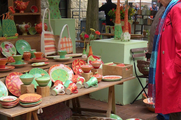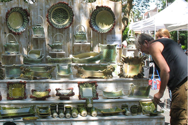 Zum Töpfermarkt in Frechen zeigen über 100 Werkstätten und Keramikkünstler aus aller Welt ihre Exponate auf dem Johann-Schmitz-Platz. Der Veranstalter hat es schwer eine Auswahl zu treffen, denn jedes Jahr gibt es bis zu 300 Bewerber. Neben Gefäßen, Figuren, Geschirr, Schmuck und Gartenkeramik können auf dem Frechener Töpfermarkt auch Töpferzubehör, Tonmassen und Brennöfen erworben werden. Ein kreatives Kinderprogramm sowie die gastronomische Betreuung durch örtliche Vereine runden diesen Keramikmarkt ab. (© FuM)