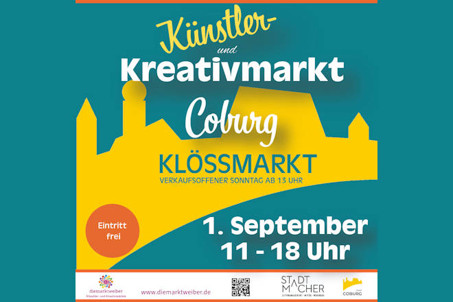 Am Klößmarkt-Sonntag bereichert ein Künstler- und Kreativmarkt das Angebot. Die Aussteller zeigen kunsthandwerkliche Arbeiten aus Holz, Glas, Papier und Stoff. Unter den Unikaren befinden sich auch Gartenkeramik, Skulpturen aus Geweih sowie handgeschmiedete Damastmesse. Kulinarische Spezialitäten wie Fruchtaufstriche, Zimtwaffeln oder Bio-Lebensmittel dürfen ebenso nicht fehlen. Parallel zum Künstler- und Kreativmarkt laden auch die örtlichen Einzelhändler zum verkaufsoffenen Sonntag ein. (© FuM)