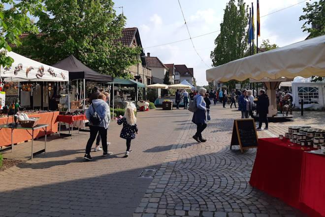 Der Leininger Markt in Guntersblum ist ein bunter Frühlingsmarkt mit Rahmenprogramm. Kunst, Talent und Handwerk stehen im Fokus dieses Marktes, welcher am Samstag mit einer Markteinstimmung auf dem Rathausplatz und Live-Musik beginnt. Am Sonntag findet dann der Künstlermarkt statt, der in der Alsheimer Straße aufgebaut wird. Hier kann man Pflanzen, Dekoideen aus verschiedenen Materialien, Schmuck, Kräuter, Gewürze und vieles mehr entdecken. Auch für das leibliche Wohl ist auf dem Leininger Markt in Guntersblum gesorgt. Guntersblumer Weine, Bier und Maibowle sorgen für eine erfrischende Abkühlung und auf dem Rathausplatz gibt es an beiden Tagen Burger und/oder Flammkuchen. Im Marktcafé im Pfarrhof kann man zudem Kaffee und selbstgebackenen Kuchen genießen. Für Kinder gibt es ein Karussell und Spiele aus vergangenen Zeiten. Am Sonntag dürfen sich die kleinen Besucher auf Puppentheater im Rathauskeller freuen. (© FuM)