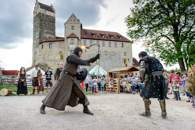 Das Mittelalter kehrt am Pfingstwochenende zurück nach Dischingen auf Burg Katzenstein. Eine Auto-Stunde von Augsburg entfernt erwarten Händler, Papiermacher, Buchbinder, Wippdrechsler, Ledermacher, Seiler, Töpfer und viele mehr den Besuch vieler Schaulustiger. An drei Tagen kann das Mittelalter-Leben in allen Facetten begutachtet werden. Neben dem großen Mittelaltermarkt wird es auch einige Schaukämpfe zu sehen geben. Für Unterhaltung sorgen auch eine Feuerschau, die Rußwurstsänger, die Zänkischen Weiber, die Knappenschule, Puppentheater für die Kinder und der Holzwurmzirkus. Besondere Höhepunkte sind das Ritterturnier und die Flugvorführungen. Das Mittelalter-Spektakel ist damit eine Veranstaltung voller Leben und Attraktionen für die ganze Familie. (© FuM)