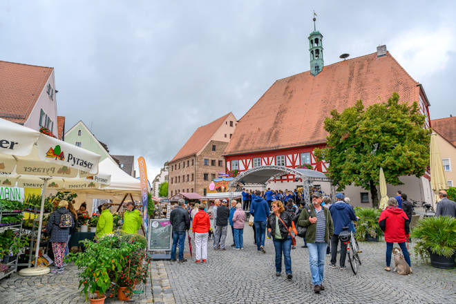 Zum Pfingstmarkt in Hilpoltstein bieten zahlreiche Fieranten ihre Waren an, darunter verschiedene Gewürze, Schmuck, Haushaltswaren, Wachstischdecken, Bekleidung, Keramik, Wurst- und Käsespezialitäten. Für das leibliche Wohl der Besucher ist mit kulinarischen Köstlichkeiten für jeden Geschmack gesorgt. Ein buntes Rahmenprogramm mit Musik und Mitmachaktionen begleitet den Markt. Auch die Einzelhändler beteiligen sich zum Pfingstmarkt in Hilpoltstein mit einem verkaufsoffenen Sonntag. (© FuM)