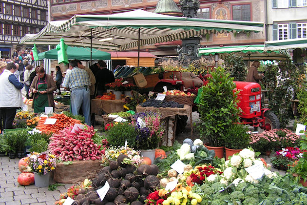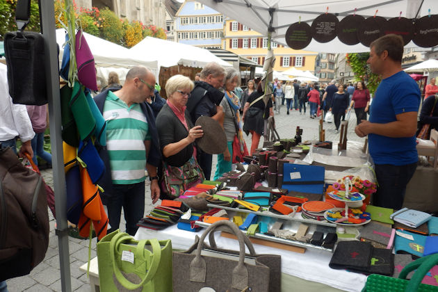 In der Universitätsstadt Tübingen findet auch in diesem Jahr der beliebte Regionalmarkt am letzten Samstag im April und am ersten Oktober-Samstag (falls dieser Tag auf den 3. Oktober fällt, dann eine Woche später) statt. Die einheimischen Händler bieten an diesen beiden Tagen rund um den alten Marktplatz verschiedene Produkte aus der Region an. Alles was in der schwäbischen Alb wächst und gedeiht, kann käuflich erworben werden. Sehr beliebt sind beispielsweise Honigprodukte, Lammwürste von der schwäbischen Alb sowie Obstsäfte, Obstschaumweine und Schaffelle. (© FuM)