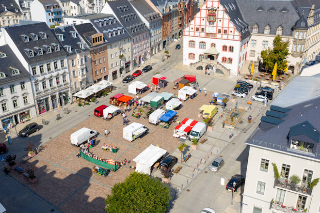 Dreimal im Jahr heißt es in der Plauener Altmarkt Jahrmarktszeit. Auf den Samstagsmärkten in Plauen erwartet die Besucher ein hauptsächlich regionales Angebot an frischen Waren, Backwaren, Kräutern, Tees, Gewürzen und vieles mehr. Neben den vielen Leckereien und dem einzigartigen Produktsortiment können sich die Besucher auf einen Spaziergang durch die wunderschöne Altstadt freuen. Die Samstagsmärkte in Plauen finden drei Mal im Jahr, jeweils am jeweils letzten Samstag in den Monaten April, Mai und September statt. (© FuM)