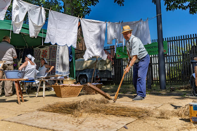 Der Spreewald lädt zum traditionellen Handwerker- und Bauernmarkt auf dem Burger Festplatz ein. Die Besucher können altes Handwerk aus der gesamten Region bestaunen. Spinnerinnen, Korbflechter, Hufschmiede, Glasschneider, Imker, Böttcher sowie Trachtenstickerei werden die Besucher mit ihren Jahrhunderte alten Techniken begeistern. Natürlich kann man die liebevoll hergestellten und qualitativ hochwertigen Produkte käuflich erwerben. Auch einheimisches Obst und Gemüse sowie Spreewälder Spezialitäten werden zum Kauf angeboten. Mit einem abwechslungsreichen Unterhaltungsprogramm wird das bunte Markttreiben abgerundet. Der Spreewälder Handwerker- und Bauernmarkt findet immer am zweiten Juliwochenende statt. (© FuM)