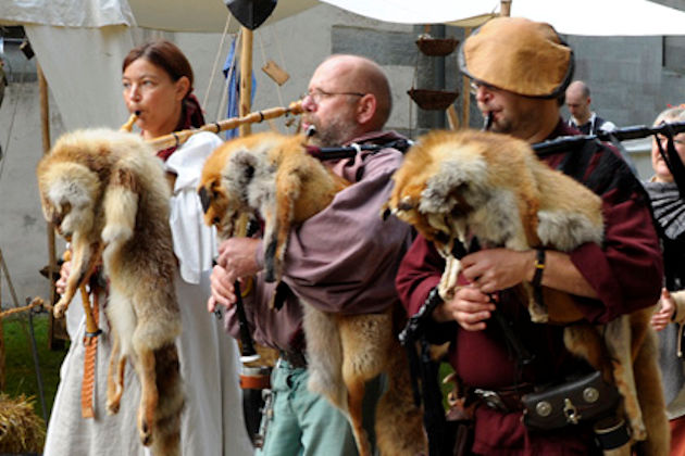 Zum Staufermarkt in Lorch (Württemberg) verwandelt sich das Klosterareal in einen mittelalterlichen Markt. Vor der Kulisse des Klosters mit seinen dicken Steinmauern stellen Handwerker ihr Können vor, während Gaukler und Spielleute das Markttreiben unterhaltsam begleiten. An den Tavernen werden kulinarische Spezialitäten von Rosmarinkartoffel bis Rosinenbrötchen bzw. von Met bis Bier gereicht. Ein Heerlager der Ritter, Knappen, Burgfräulein und Marketenderinnen auf über 4.000 Quadratmetern rundet das Programm zum Staufermarkt im Kloster Lorch ab. Höhepunkt ist in der Regel die Tavernen-Nacht mit Feuerzauber am Samstagabend. (© FuM)
