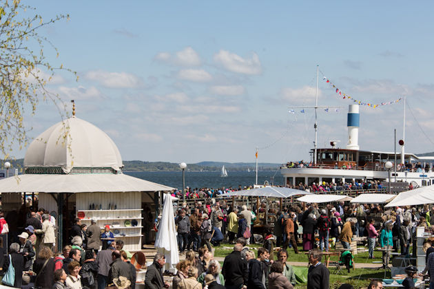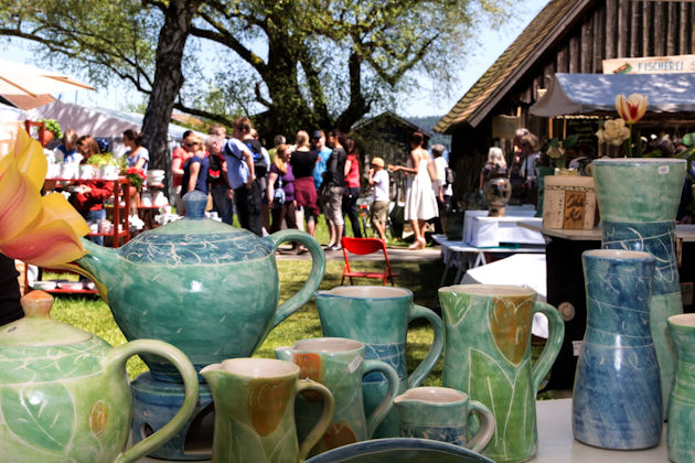 Rund 170 Töpfer aus ganz Europa reisen zum Diessener Töpfermarkt am Ammersee in Dießen an. Damit zählt dieser Töpfermarkt zu den größten seiner Art in Europa. Wie beliebt der Töpfermarkt in Dießen am Ammersee bei den Ausstellern ist, beweist die Zahl von bis zu 400 Bewerbungen. Die Töpfer bauen ihre Stände direkt am Ufer des Sees entlang auf und zeigen einen Querschnitt ihres Schaffens. Unter den Ausstellern wird alljährlich der Diessener Keramikpreis vergeben. Der Töpfermarkt in Dießen am Ammersee öffnet immer von Christi Himmelfahrt bis zum darauffolgenden Sonntag. Töpfermarkt-Besuchern sei auch ein Spaziergang entlang des Diessener Keramikweges mit seinen zahlreichen Ausstellungen und Werkstätten empfohlen. (© FuM)